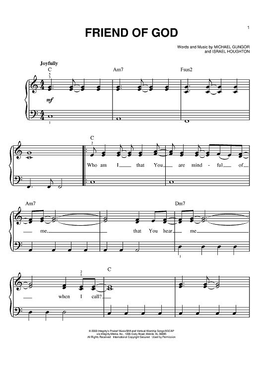 Digital Sheet Music for Friend Of God by Israel Houghton, Michael Gungor scored for Easy Piano; id:401813