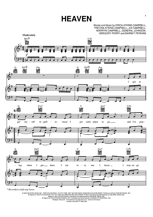 Digital Sheet Music for Heaven by Mary Mary, Erica Atkins-Campbell, Trecina Atkins-Campbell, Joi Campbell, Warryn Campbell, General Johnson, Barney Perkins, Gregory Perry scored for Piano/Vocal/Chords; id:388571
