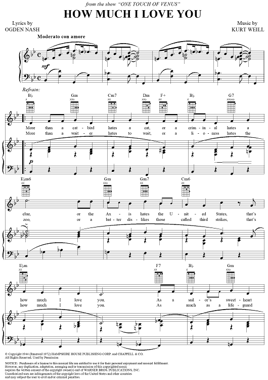 Digital Sheet Music for How Much I Love You by Ogden Nash, Kurt Weill scored for Piano/Vocal; id:263494