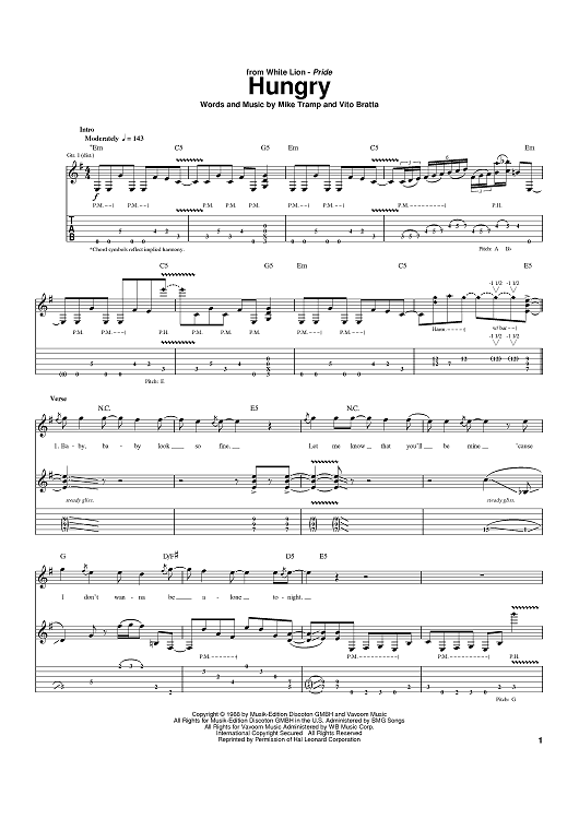 Digital Sheet Music for Hungry by White Lion, Vito Bratta, Mike Tramp scored for Guitar Tab; id:400236