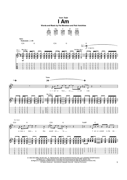 Digital Sheet Music for I Am by Pat Monahan, Rob Hotchkiss, Train scored for Guitar Tab; id:373393