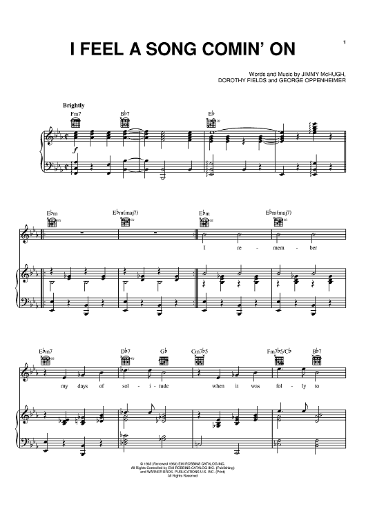 Digital Sheet Music for I Feel A Song Comin' On by Dorothy Fields, Jimmy McHugh, Dean Martin, George Oppenheimer scored for Piano/Vocal/Chords; id:375232