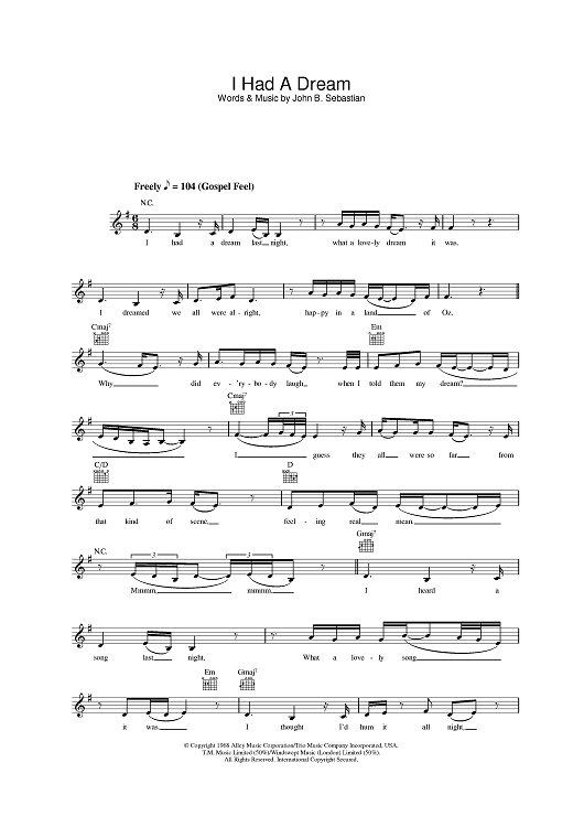 Digital Sheet Music for I Had A Dream by John Sebastian, Joss Stone scored for Lead Sheet; id:382953