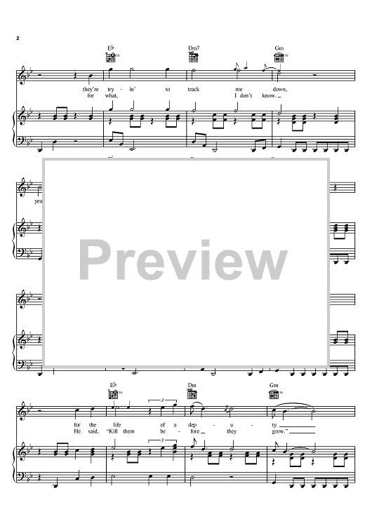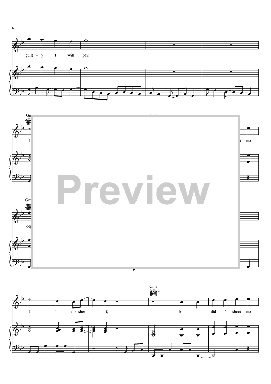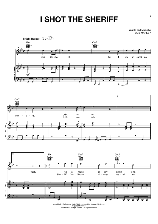 Digital Sheet Music for I Shot The Sheriff by Eric Clapton, Bob Marley, Warren G scored for Piano/Vocal/Chords; id:370173