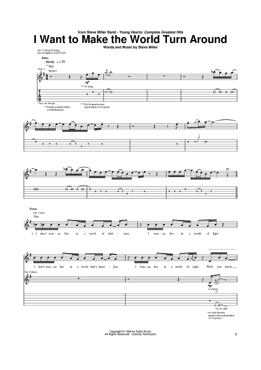 Digital Sheet Music for I Want To Make The World Turn Around by Steve Miller, Steve Miller Band scored for Guitar Tab; id:386181