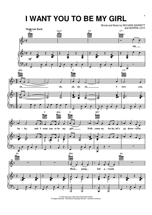 Digital Sheet Music for I Want You To Be My Girl by Morris Levy, Frankie Lymon, Richard Barrett scored for Piano/Vocal/Chords; id:367456