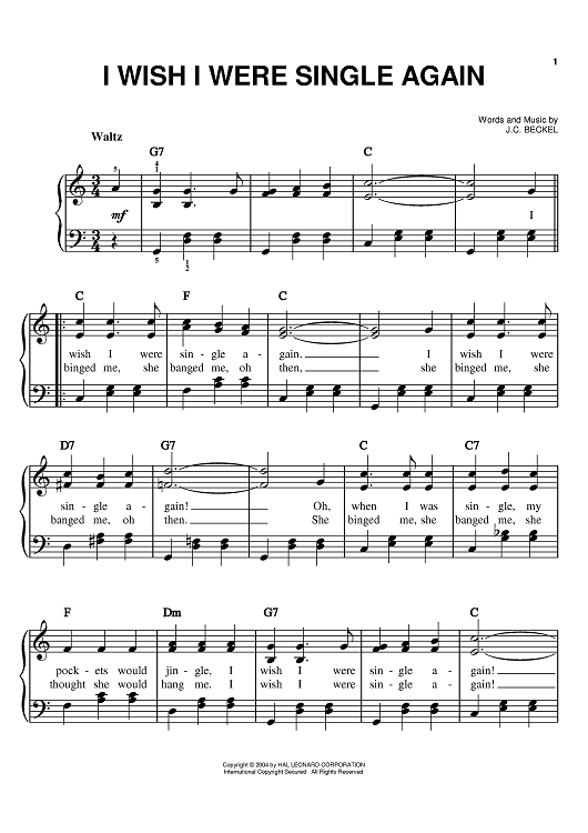Digital Sheet Music for I Wish I Were Single Again by James Cox Beckel scored for Easy Piano; id:373847