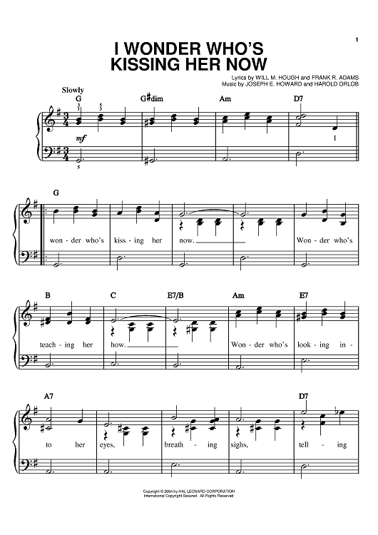 Digital Sheet Music for I Wonder Who's Kissing Her Now by Perry Como, Joseph E. Howard, Dean Martin, Ray Charles, William M. Hough, Frank R. Adams, Harold Orlob scored for Easy Piano; id:373848