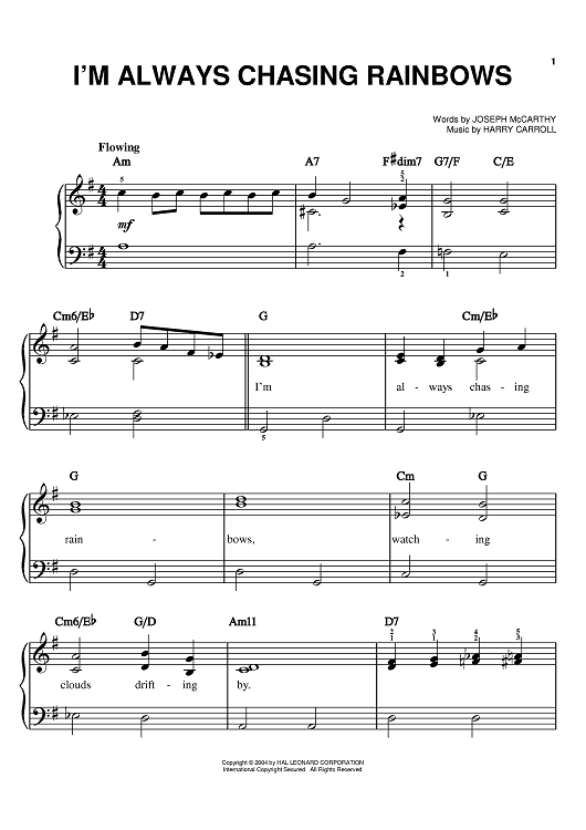 Digital Sheet Music for I'm Always Chasing Rainbows by Judy Garland, Tony Bennett, Perry Como, Harry Carroll, Joseph McCarthy scored for Easy Piano; id:373849