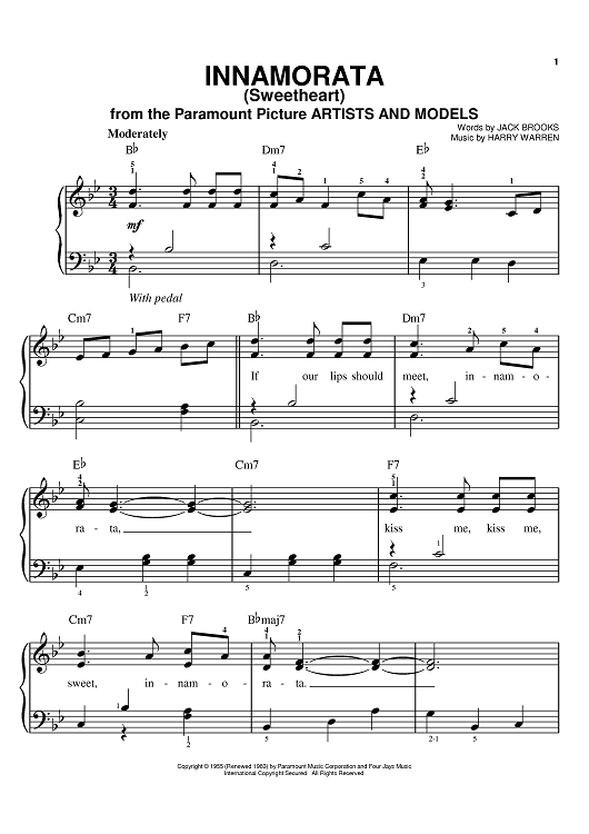 Digital Sheet Music for Innamorata (Sweetheart) by Harry Warren, Dean Martin, Jack Brooks scored for Easy Piano; id:368903
