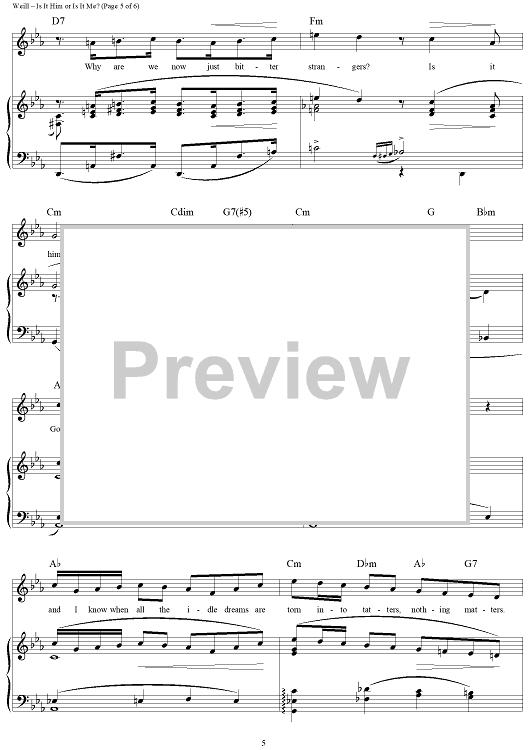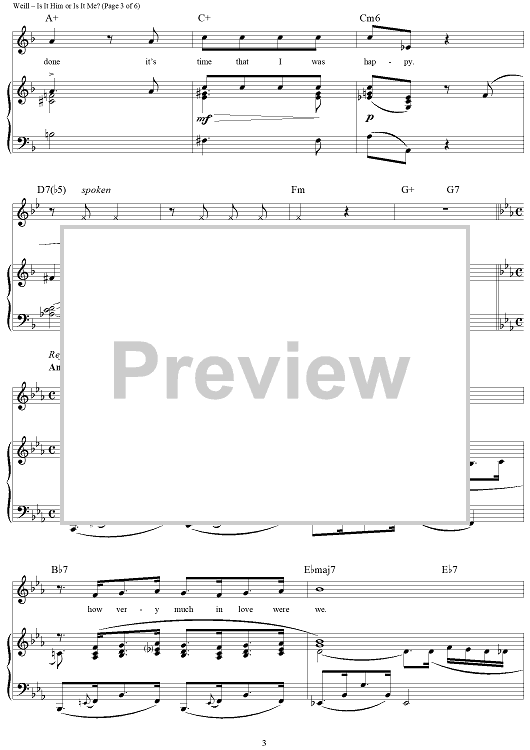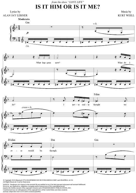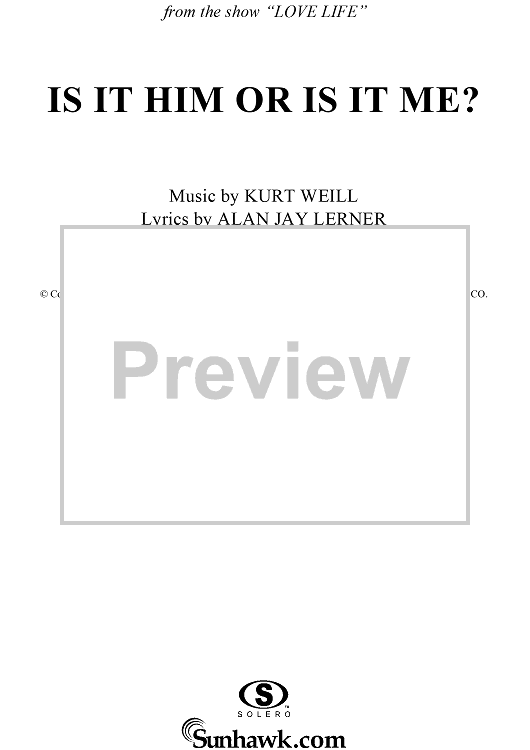 Digital Sheet Music for Is It Him or Is It Me? by Alan Jay Lerner, Kurt Weill scored for Piano/Vocal; id:263507