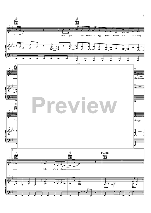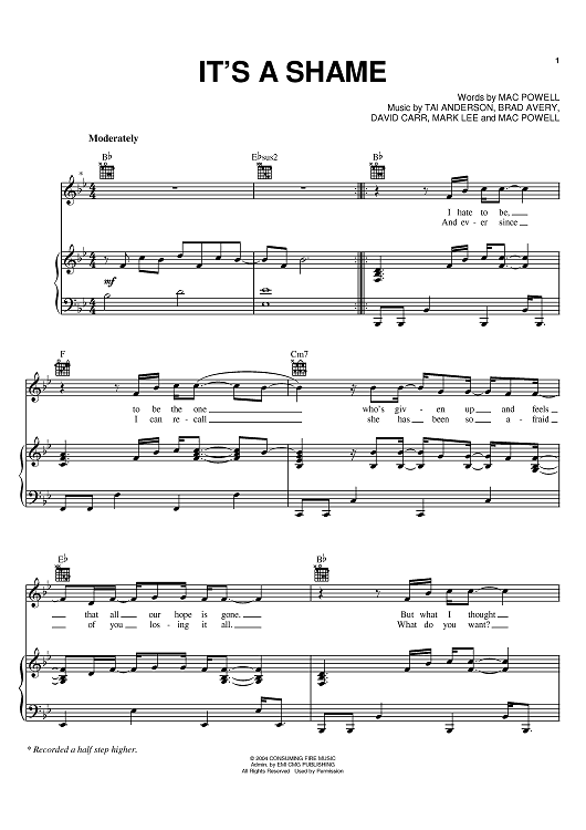 Digital Sheet Music for It's A Shame by Third Day, Mac Powell, Mark David Lee, Tai Anderson, Brad Avery, David Carr scored for Piano/Vocal/Chords; id:375222