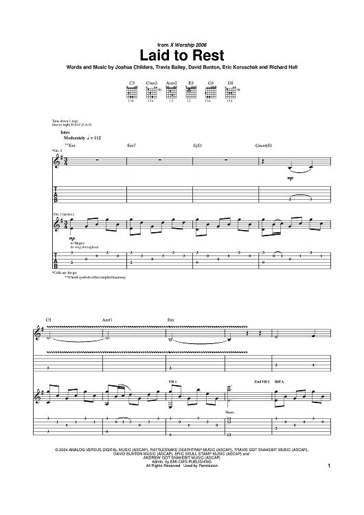 Digital Sheet Music for Laid To Rest by Richard Hall, Travis Bailey, David Bunton, Joshua Childers, Eric Koruschak, The Showdown scored for Guitar Tab; id:388505