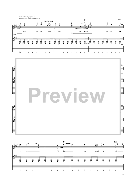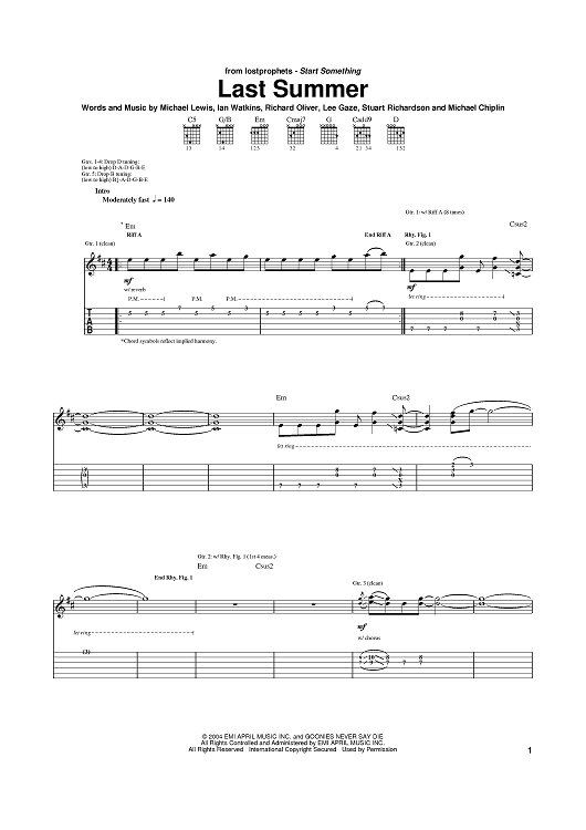 Digital Sheet Music for Last Summer by Michael Lewis, Lostprophets, Richard Oliver, Ian Watkins scored for Guitar Tab; id:374981