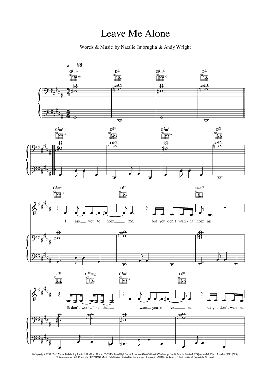Digital Sheet Music for Leave Me Alone by Natalie Imbruglia, Andy Wright scored for Piano/Vocal/Chords; id:376576
