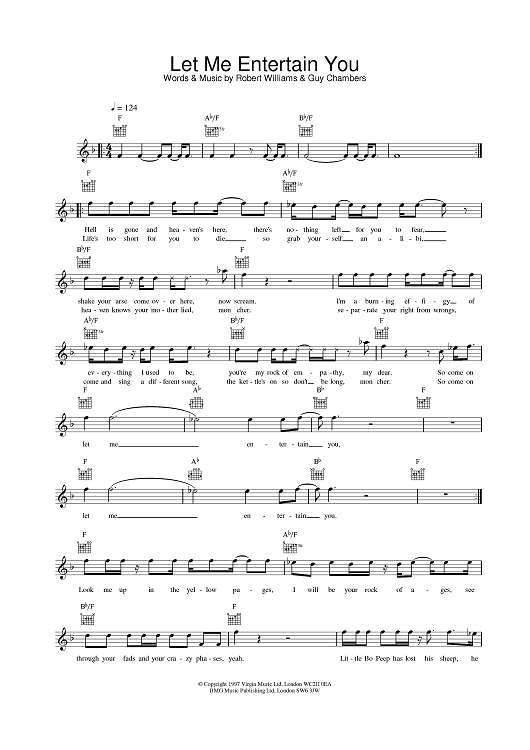 "Let Me Entertain You" Sheet Music by Robbie Williams