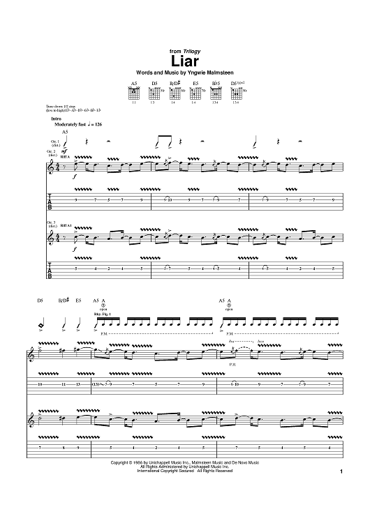 Digital Sheet Music for Liar by Yngwie Malmsteen scored for Guitar Tab; id:373369