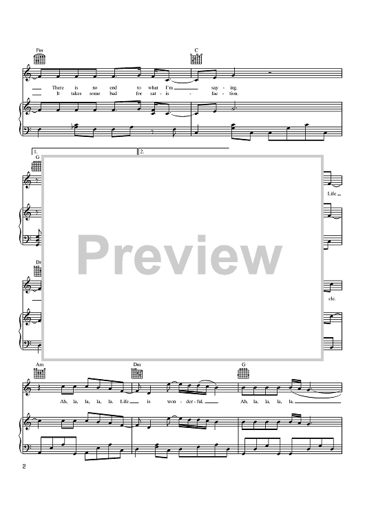 Digital Sheet Music for Life Is Wonderful by Jason Mraz scored for Piano/Vocal/Chords; id:389102