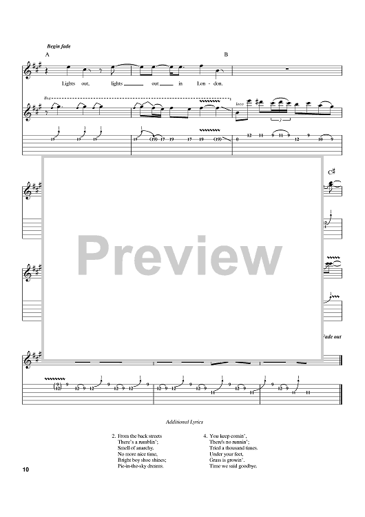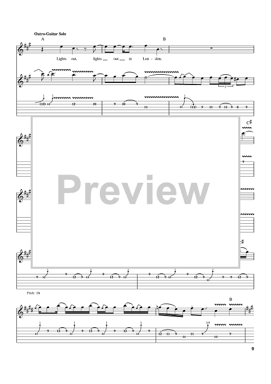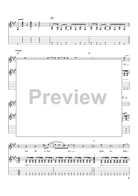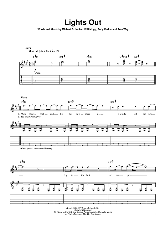 Digital Sheet Music for Lights Out by Phil Mogg, Andy Parker, Michael Schenker, UFO, Pete Way scored for Guitar Tab; id:402580