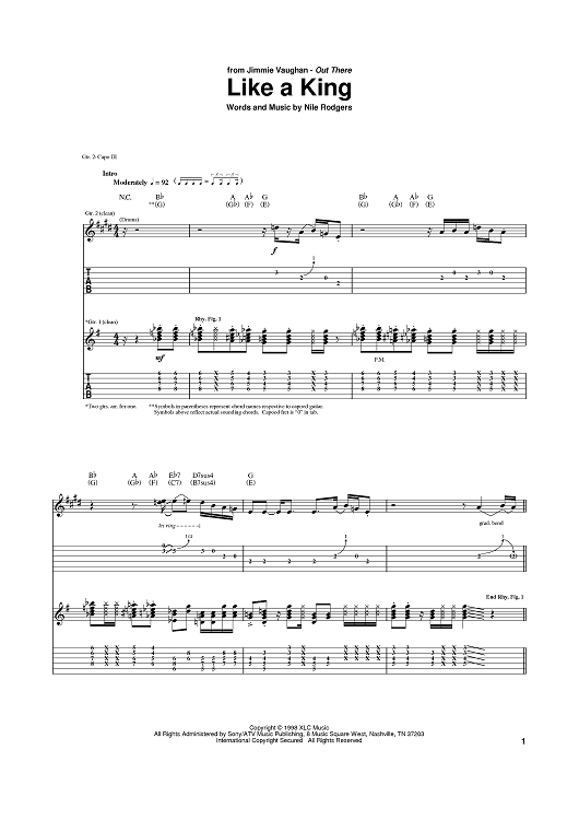 Digital Sheet Music for Like A King by Nile Rodgers, Jimmie Vaughan scored for Guitar Tab; id:388750