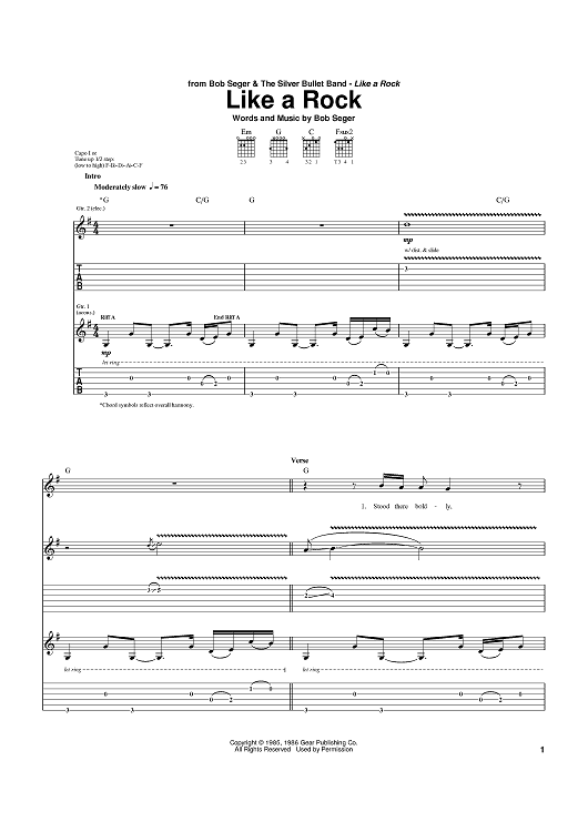 Digital Sheet Music for Like A Rock by Bob Seger scored for Guitar Tab; id:371900