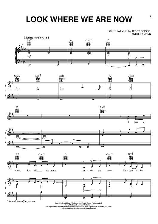 Digital Sheet Music for Look Where We Are Now by Billy Mann, Teddy Geiger scored for Piano/Vocal/Chords; id:392270