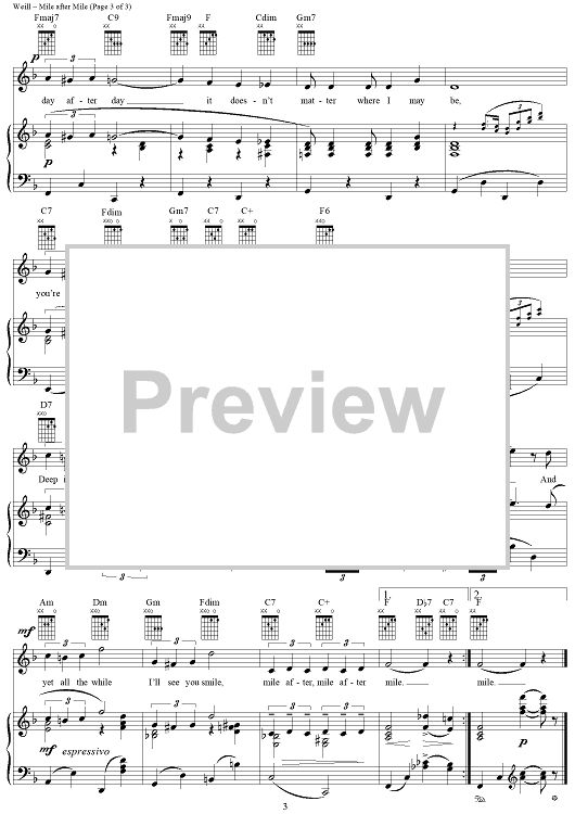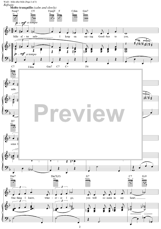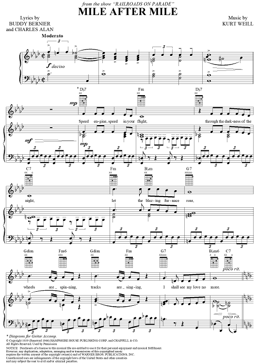 Digital Sheet Music for Mile after Mile by Charles Alan, Buddy Bernier, Kurt Weill scored for Piano/Vocal; id:263533