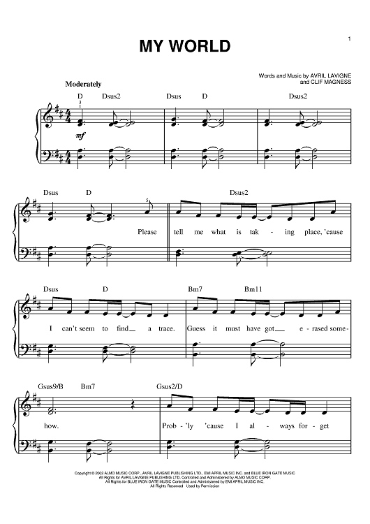 Digital Sheet Music for My World by Clif Magness, Avril Lavigne scored for Easy Piano; id:371170