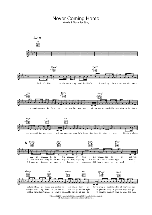 Digital Sheet Music for Never Coming Home by Sting scored for Lead Sheet; id:378178