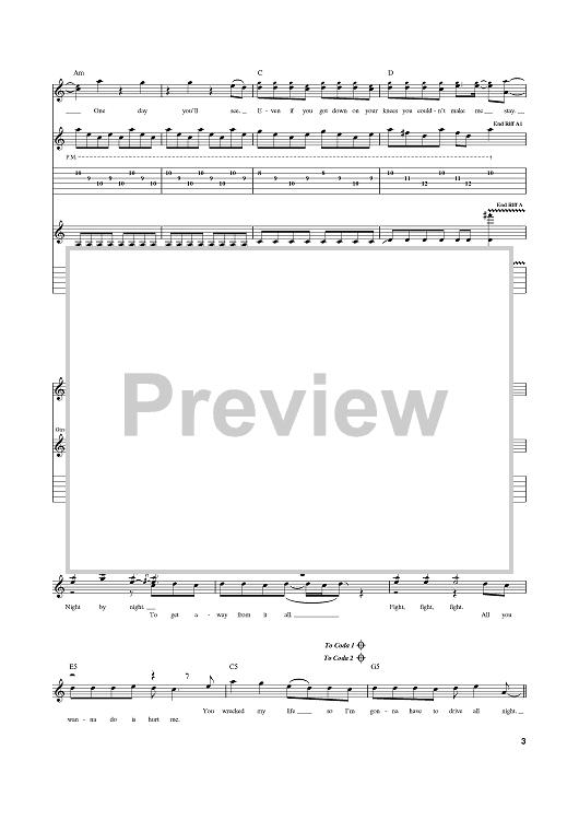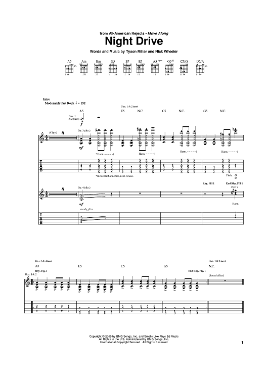 Digital Sheet Music for Night Drive by Tyson Ritter, Nick Wheeler scored for Guitar Tab; id:388181