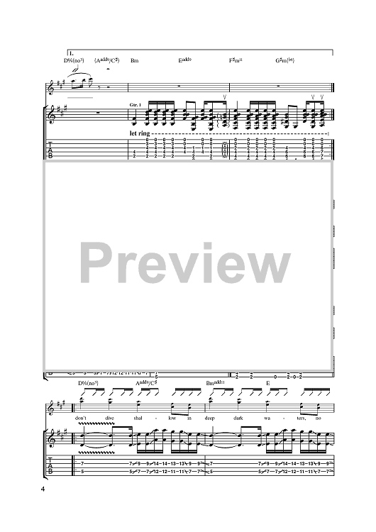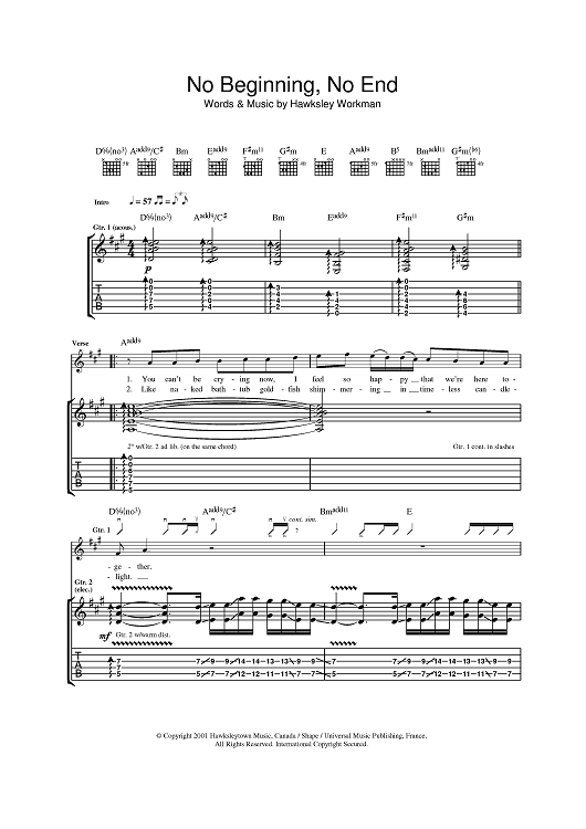Digital Sheet Music for No Beginning No End by Hawksley Workman scored for Guitar Tab; id:390591