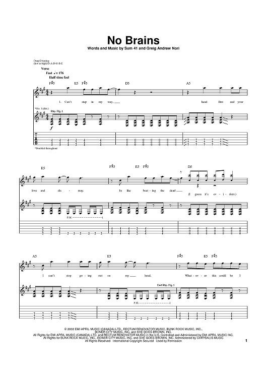 Digital Sheet Music for No Brains by Greig Andrew Nori, Sum 41 scored for Guitar Tab; id:371071