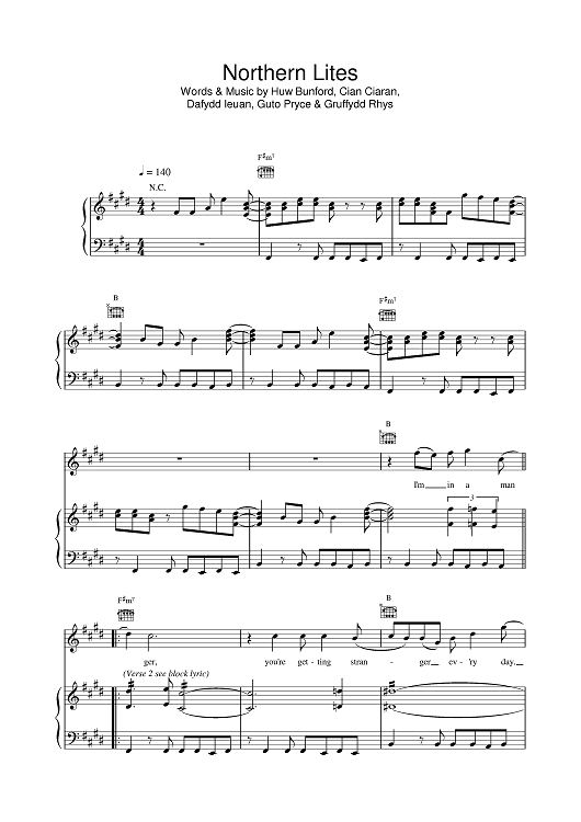 Digital Sheet Music for Northern Lites by Super Furry Animals scored for Lead Sheet; id:376884