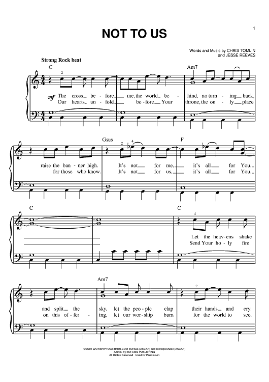 Digital Sheet Music for Not To Us by Chris Tomlin, Jesse Reeves scored for Easy Piano; id:389067