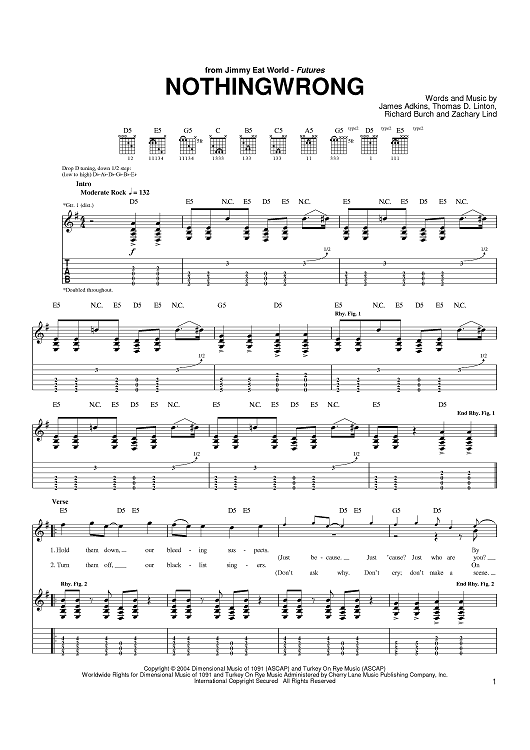 Digital Sheet Music for Nothingwrong by James Adkins, Richard Burch, Jimmy Eat World, Zachary Lind, Tom Linton scored for Guitar Tab; id:387767