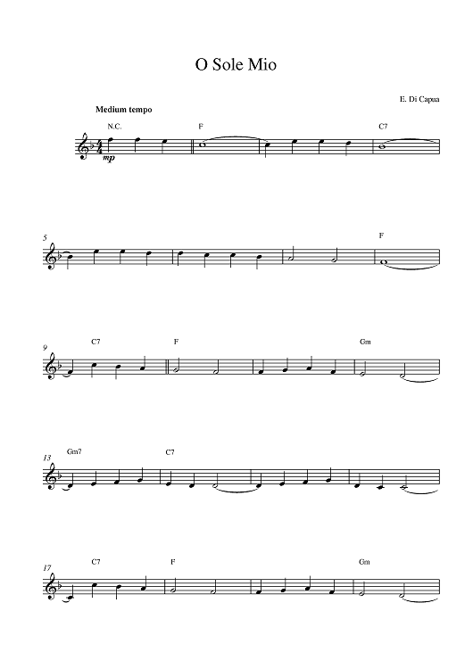Digital Sheet Music for O Sole Mio by Eduardo di Capua scored for Lead Sheet; id:380845