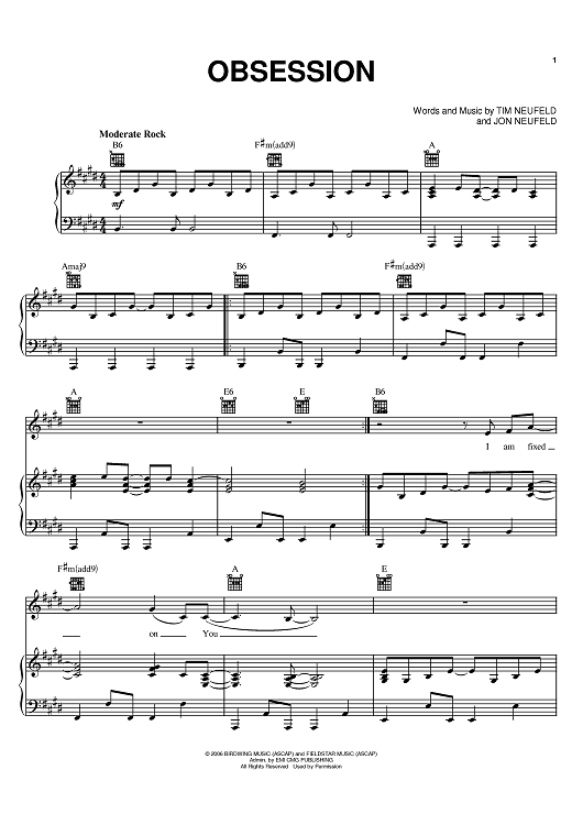 Digital Sheet Music for Obsession by Tim Neufeld, Jon Neufeld, Starfield scored for Piano/Vocal/Chords; id:393587