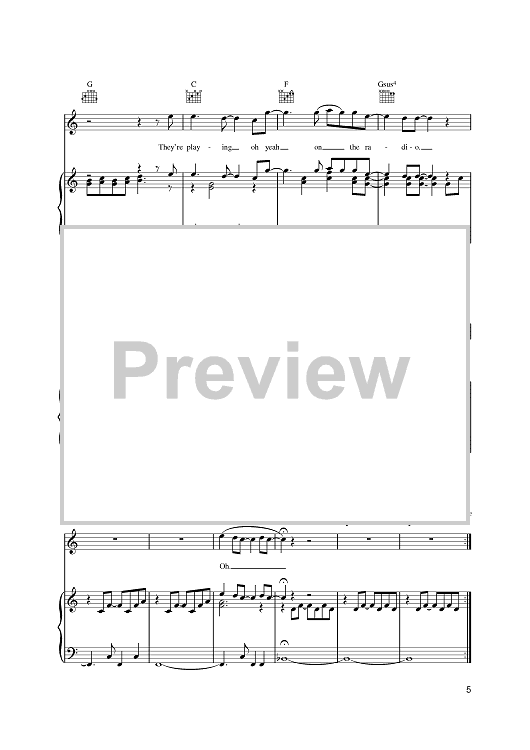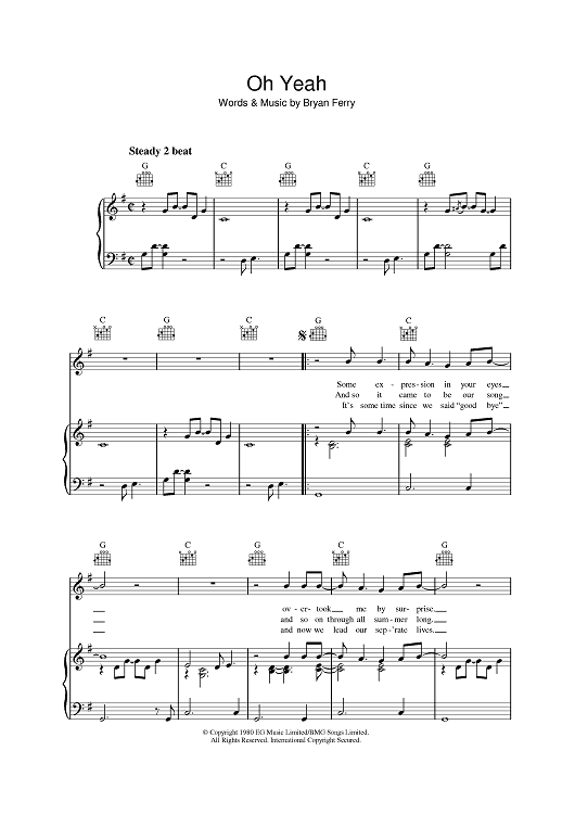 Digital Sheet Music for Oh Yeah by Bryan Ferry, Roxy Music scored for Piano/Vocal/Chords; id:392170