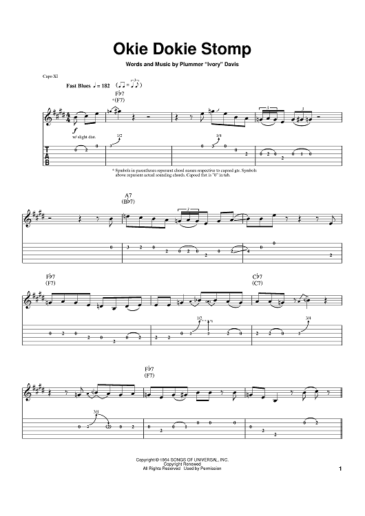 Digital Sheet Music for Okie Dokie Stomp by Gatemouth Brown, Plummer Davis scored for Guitar Tab; id:402823