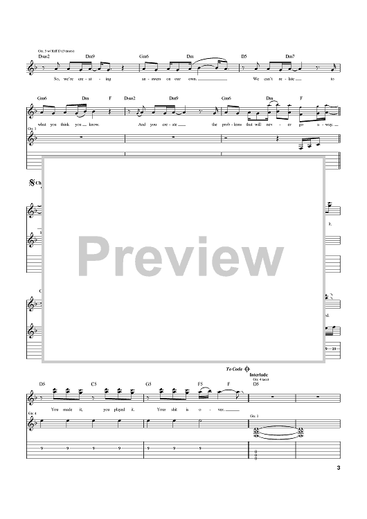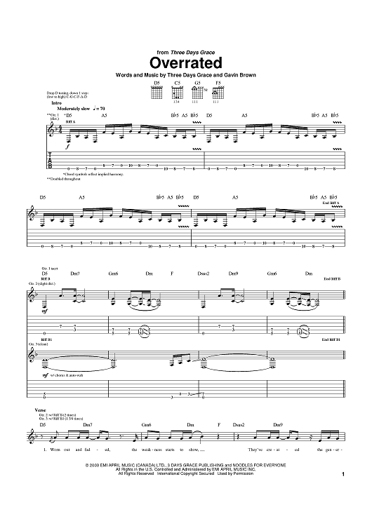 Digital Sheet Music for Overrated by Golden Brown, Three Days Grace scored for Guitar Tab; id:373635