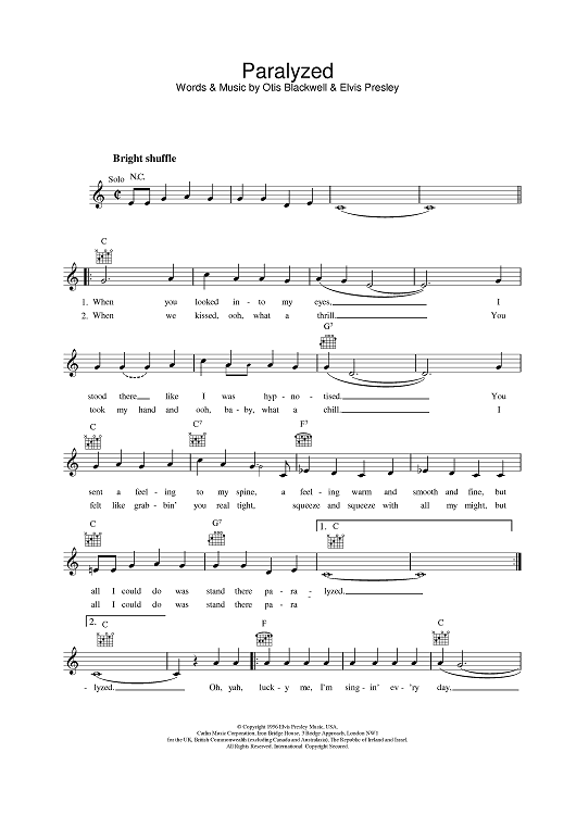 Digital Sheet Music for Paralyzed by Elvis Presley scored for Lead Sheet; id:376468
