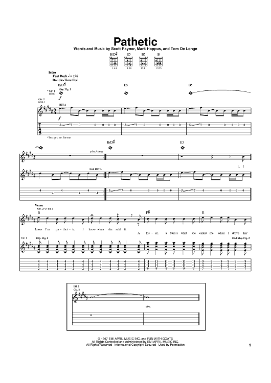 Digital Sheet Music for Pathetic by Mark Hoppus, blink-182, Tom DeLonge, Scott Raynor scored for Guitar Tab; id:370576