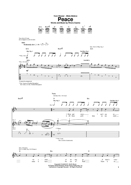 Digital Sheet Music for Peace by Rivers Cuomo, Weezer scored for Guitar Tab; id:386479