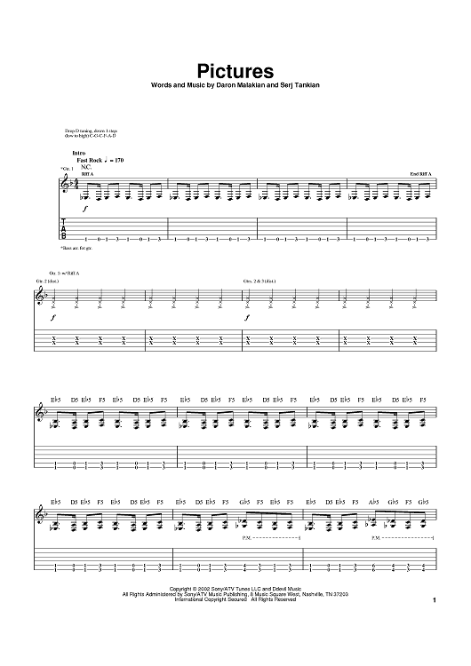 Digital Sheet Music for Pictures by Daron Malakian, System Of A Down, Serj Tankian scored for Guitar Tab; id:370645