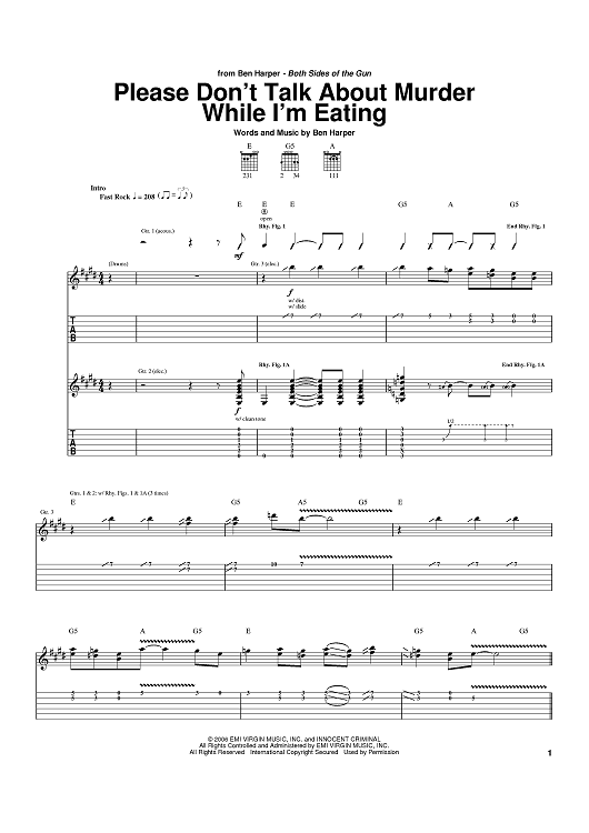Digital Sheet Music for Please Don't Talk About Murder While I'm Eating by Ben Harper scored for Guitar Tab; id:390087