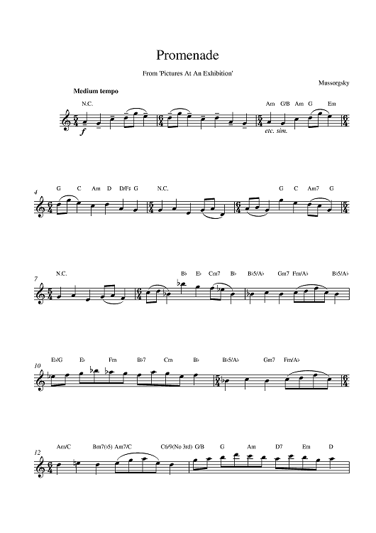 Digital Sheet Music for Promenade by Modest Musorgsky scored for Lead Sheet; id:380861