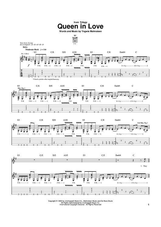 "Queen In Love" Sheet Music by Yngwie Malmsteen