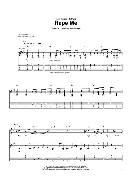 Digital Sheet Music for Rape Me by Kurt Cobain, Nirvana scored for Guitar Tab; id:371156
