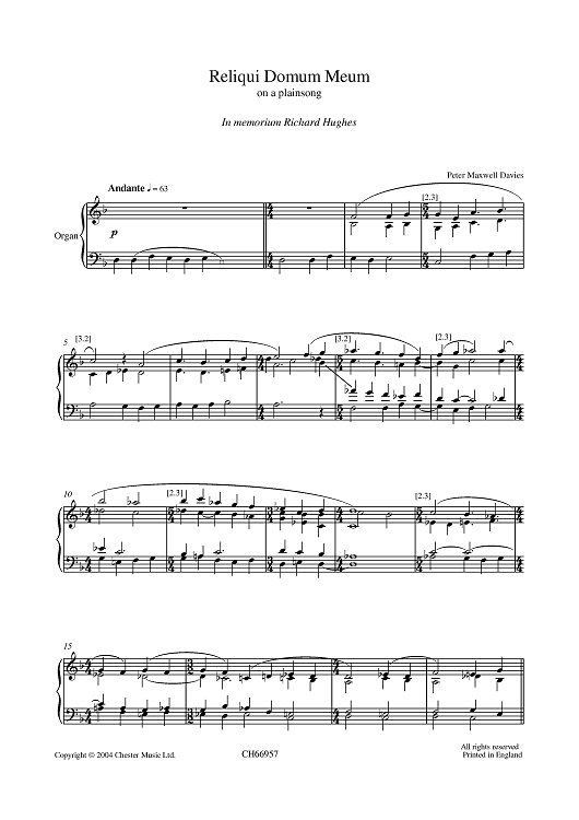 "Reliqui Domum Meum" Sheet Music by Peter Maxwell Davies