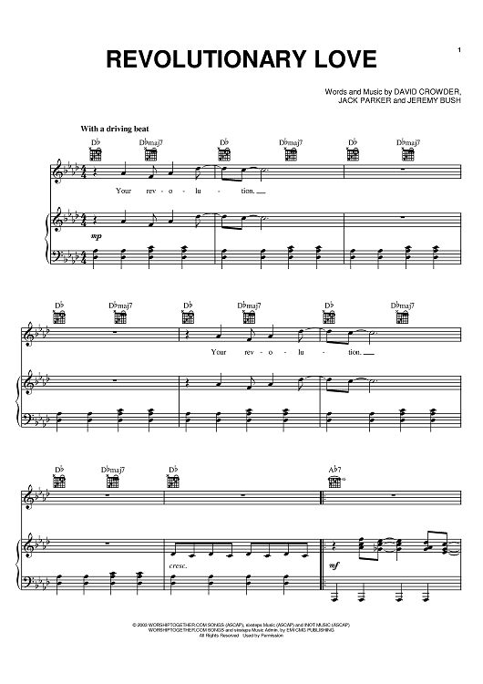 Digital Sheet Music for Revolutionary Love by Jack Parker, David Crowder, David Crowder Band, Jeremy Bush scored for Piano/Vocal/Chords; id:389709